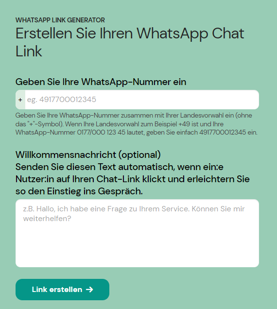 Erstelle jetzt kostenlos deinen eigenen WhatsApp-Link