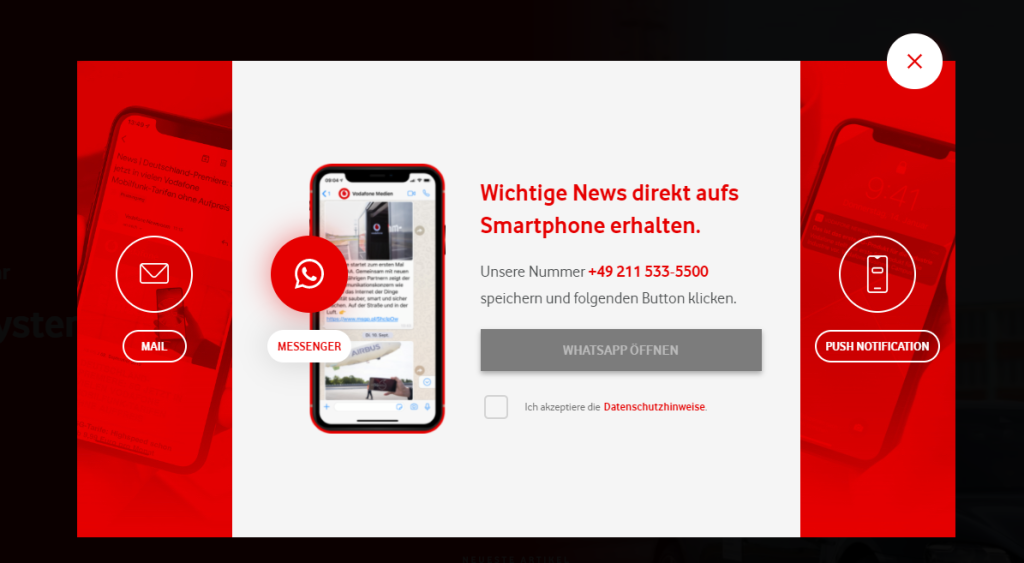 - Erkläre, welche Vorteile diese Art von “Landingpage” hat für die Nutzer:innen hat („‚Stell uns deine Fragen gern persönlich per WhatsApp.“)