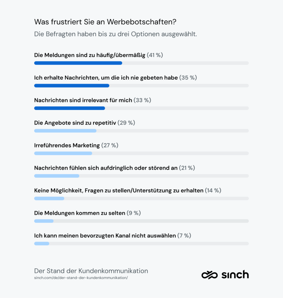 Unsere Umfrage hat ergeben, dass dies die drei größten Frustrationen sind, wenn man von einer Marke Werbebotschaften erhält: