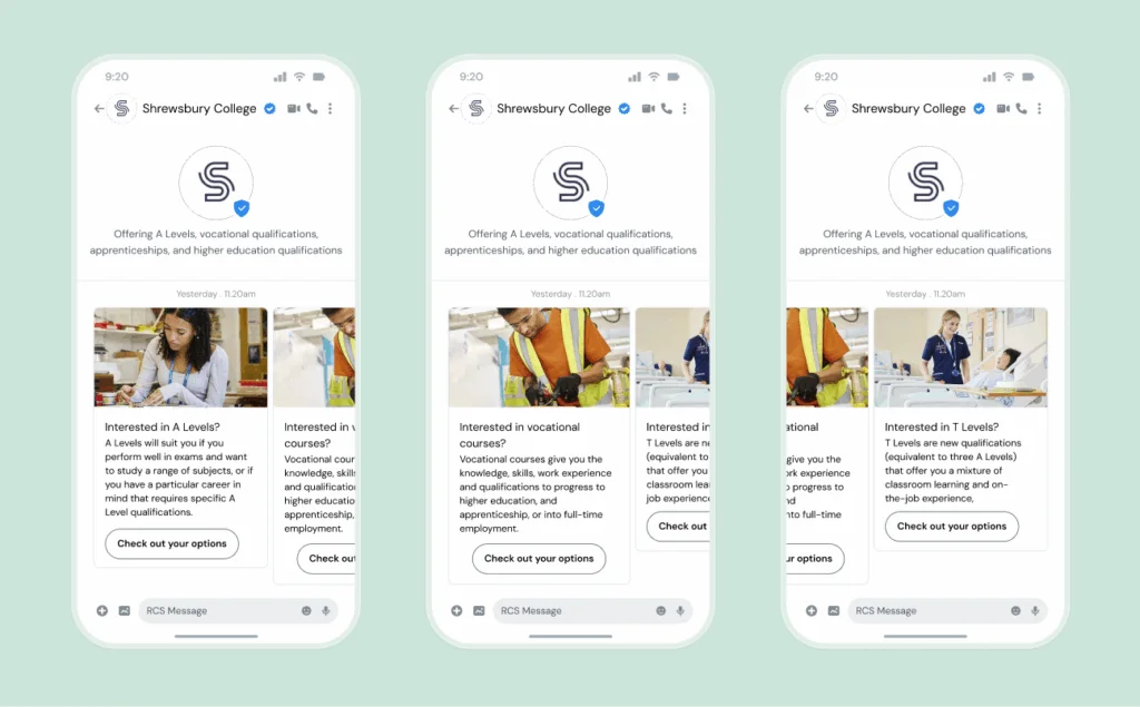 After finding success with SMS, Shrewsbury College became one of the first in the UK education sector to pilot Rich Communication Services (RCS), thanks to taking advantage of Sinch Engage’s fast innovation in the emerging new messaging channel.