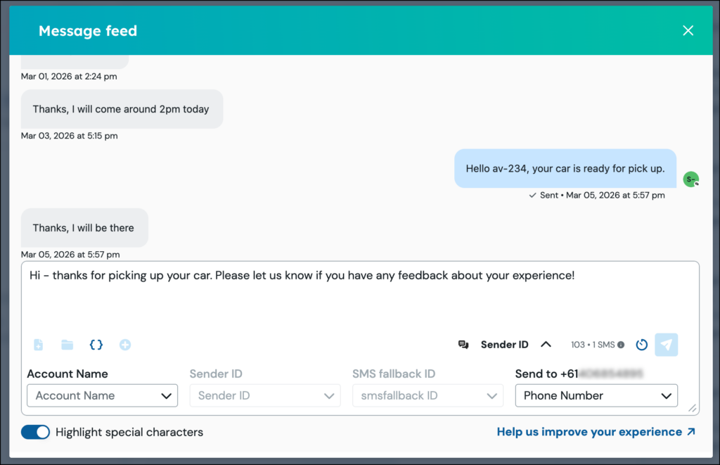 Communication is a two-way street. In addition to automated workflows, you can now send direct 1:1 messages (like SMS and MMS) from within the custom object record view itself.