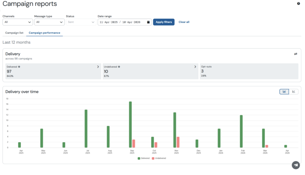 Instead of analyzing reports one by one, you can now track key metrics like delivery and engagement across all your messaging efforts from a single, unified view.