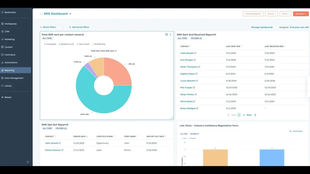 If you don’t measure, you never know what works. Thankfully, with a HubSpot SMS integration like Sinch Engage – which has full SMS analytics built-in – you can take advantage of detailed reporting dashboards to automatically record your contact activity and continuously optimize your text campaigns.