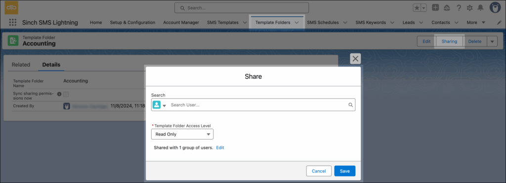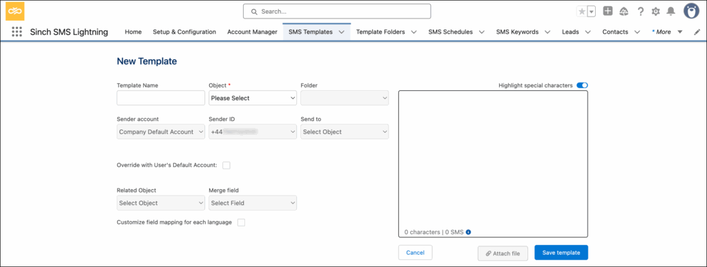 You can create and store reusable templates right inside Salesforce — here’s how in the Sinch help guide.