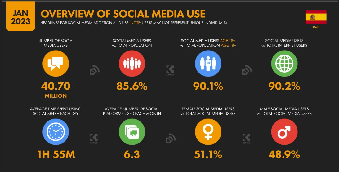 Algunas tendencias específicas de España son que Twitter, Telegram y Facebook Messenger tienen una presencia bastante grande en el país también.