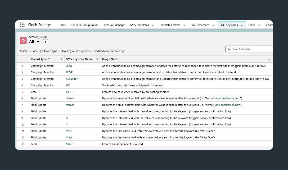 Increase efficiency by using SMS keywords to create leads and update records