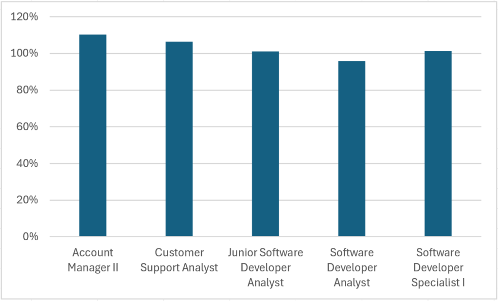 Assim, foram comparados exclusivamente os empregados que ocupam os mesmos cargos e executam as mesmas funções, observados os parâmetros já mencionados, e com base somente nas informações dos empregados ativos em junho de 2025.